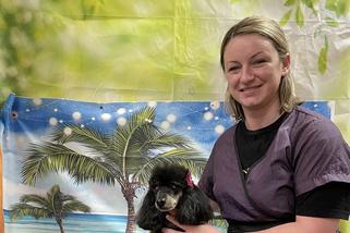 Haileigh has been with us for more than 5 years. She started as a bather. With our training, guidance and her natural talent she has become an expert Groomer. She has a calm nature and love for the animals! She is a wonderful addition to our salon.
